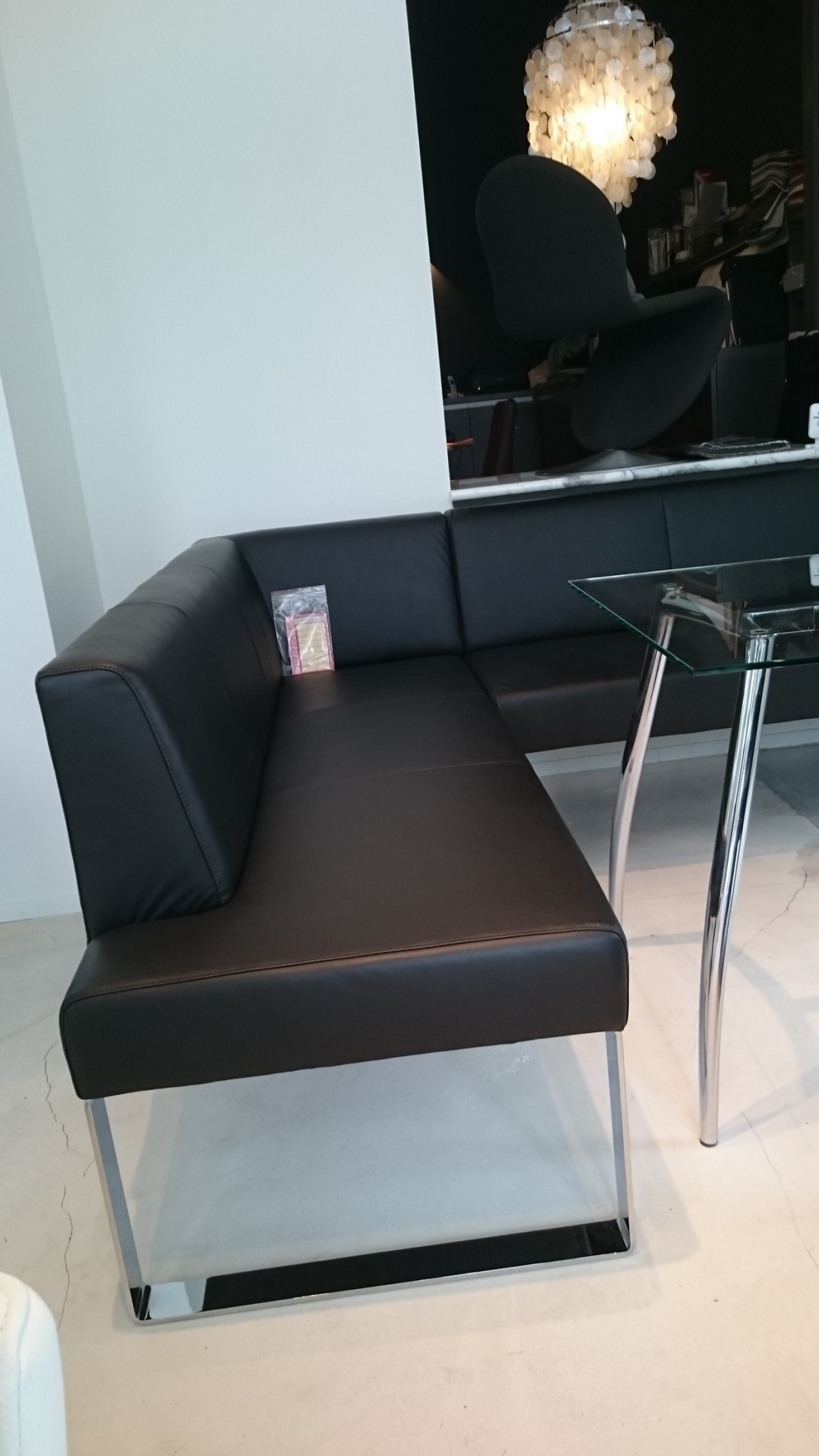 Ensemble composé d'une table verre sécurit et pieds chromés SP2 80 x 140 cm H 75 cm + coin repas SeaSide 180 x 240 cm en cuir Nubia noir.