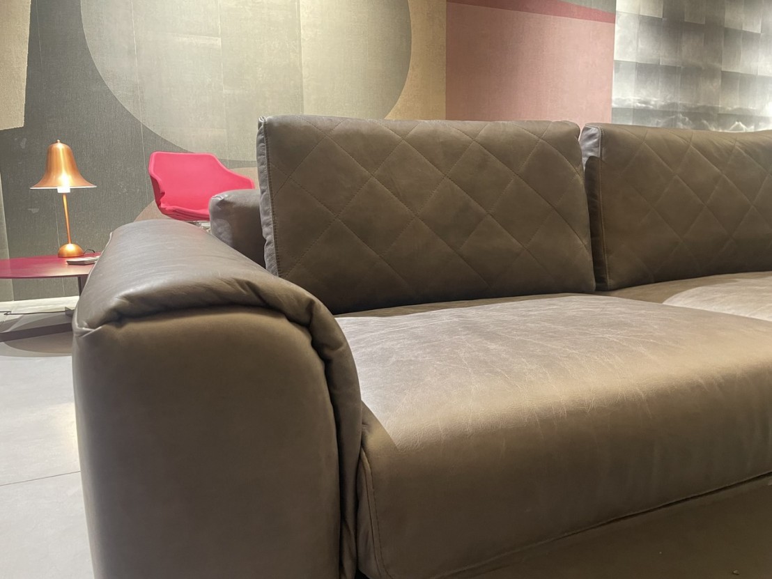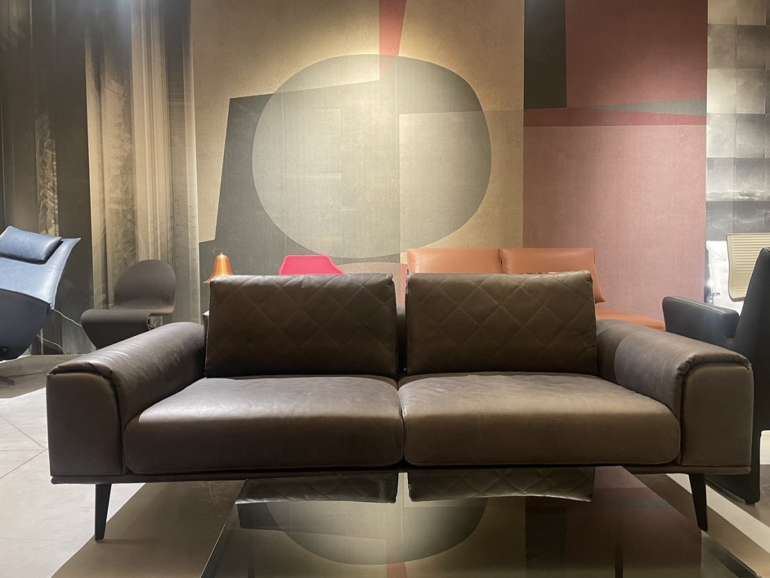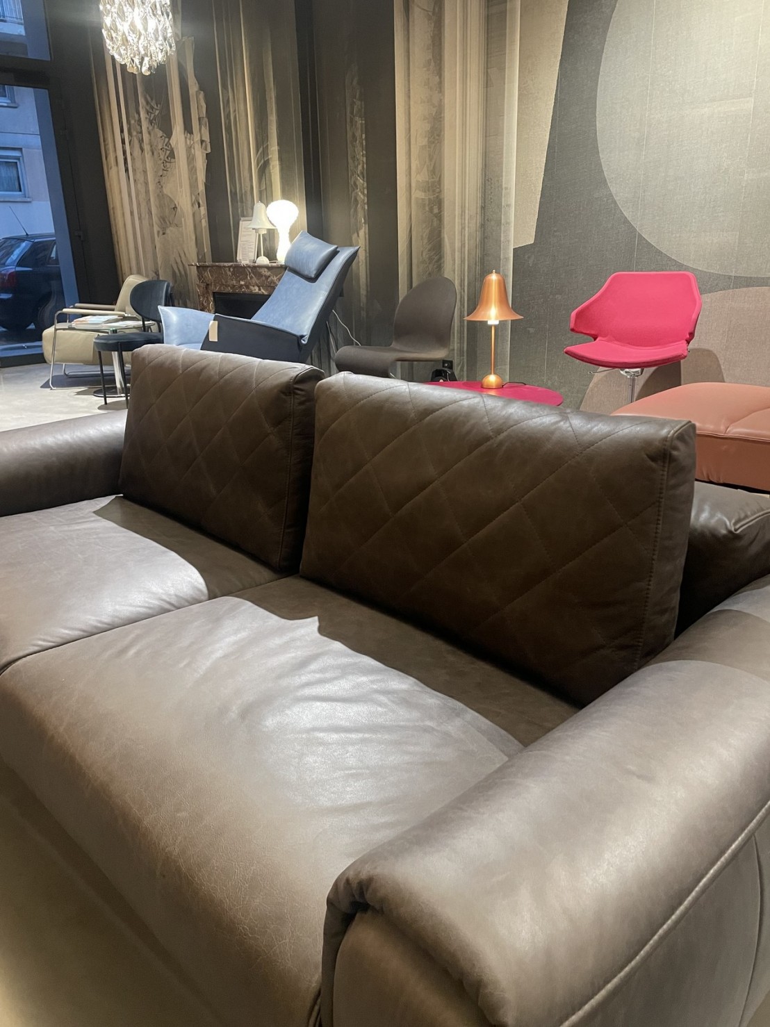 Canapé contemporain 2,5 places JOHN.B en cuir pleine fleur Deluxe 2 Vintage waxed ciré gris foncé graphit, pieds design en acier teinte noir.