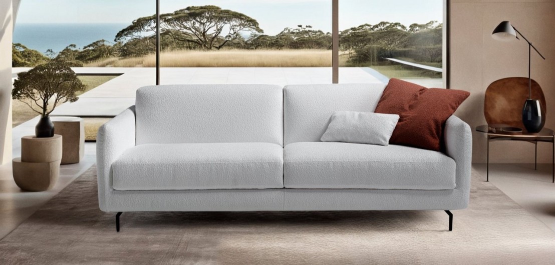 Son assise généreuse offre un confort moelleux et enveloppant, ses lignes épurées et ses pieds design soulignent l'aspect aérien et raffiné du canapé.