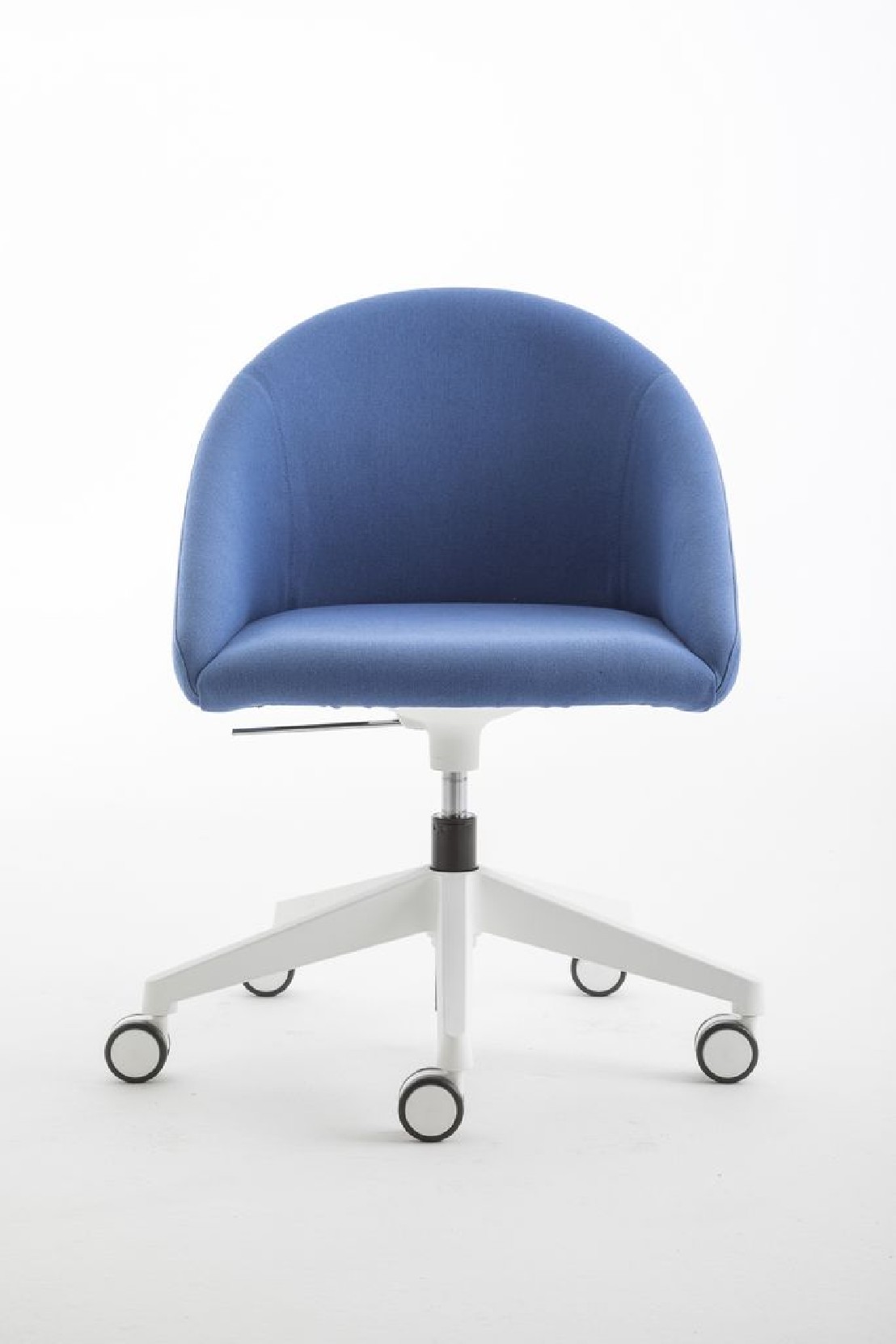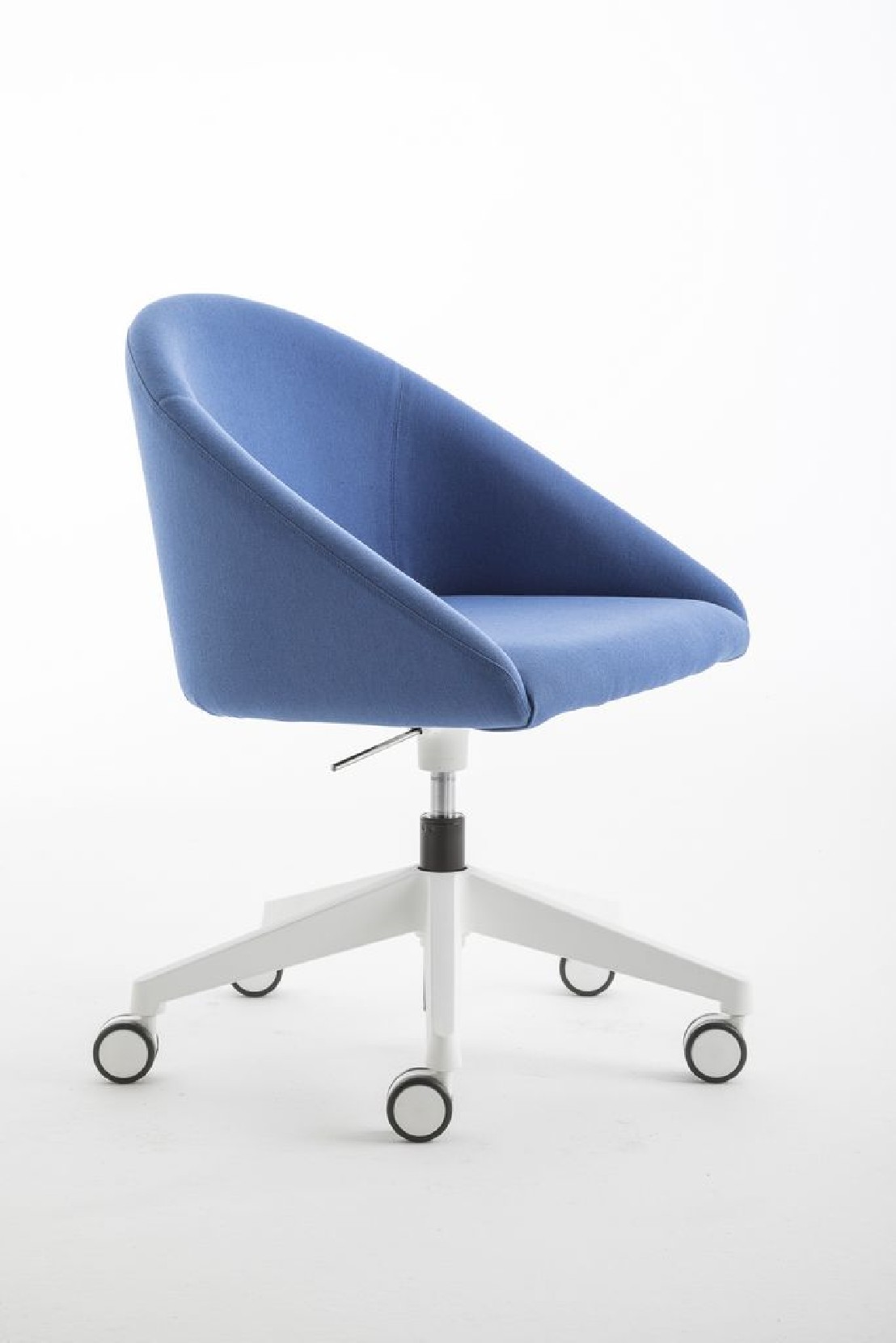 - pied pivotant à 5 branches et réglable en hauteur (gaz) en aluminium chromé CR, ou blanc Bl, noir NE, taupe BG, vert olive VO, cuivre CB, marron TB, jaune moutarde SE, bleu BL, gris soie GS, ivoire SB, peinture poudre époxy avec traitement haute résistance aux rayures & roulettes noires auto-freinées de 65 mm de diamètre.