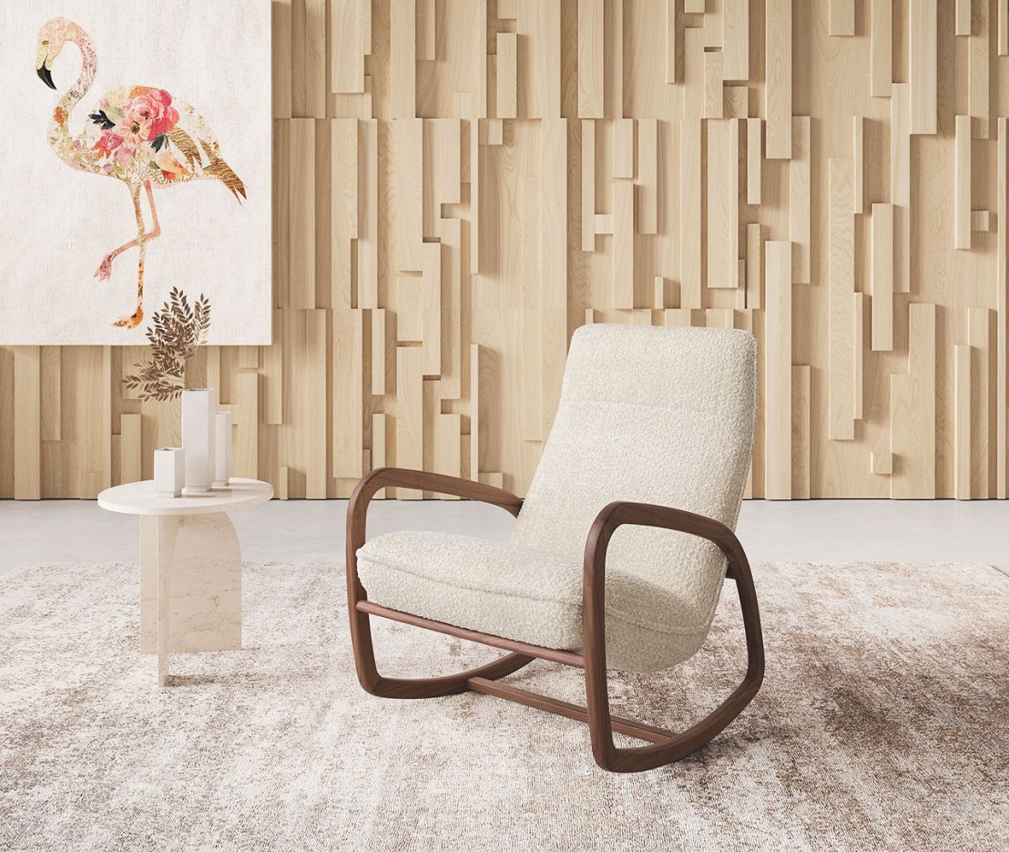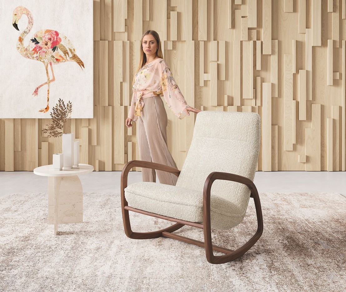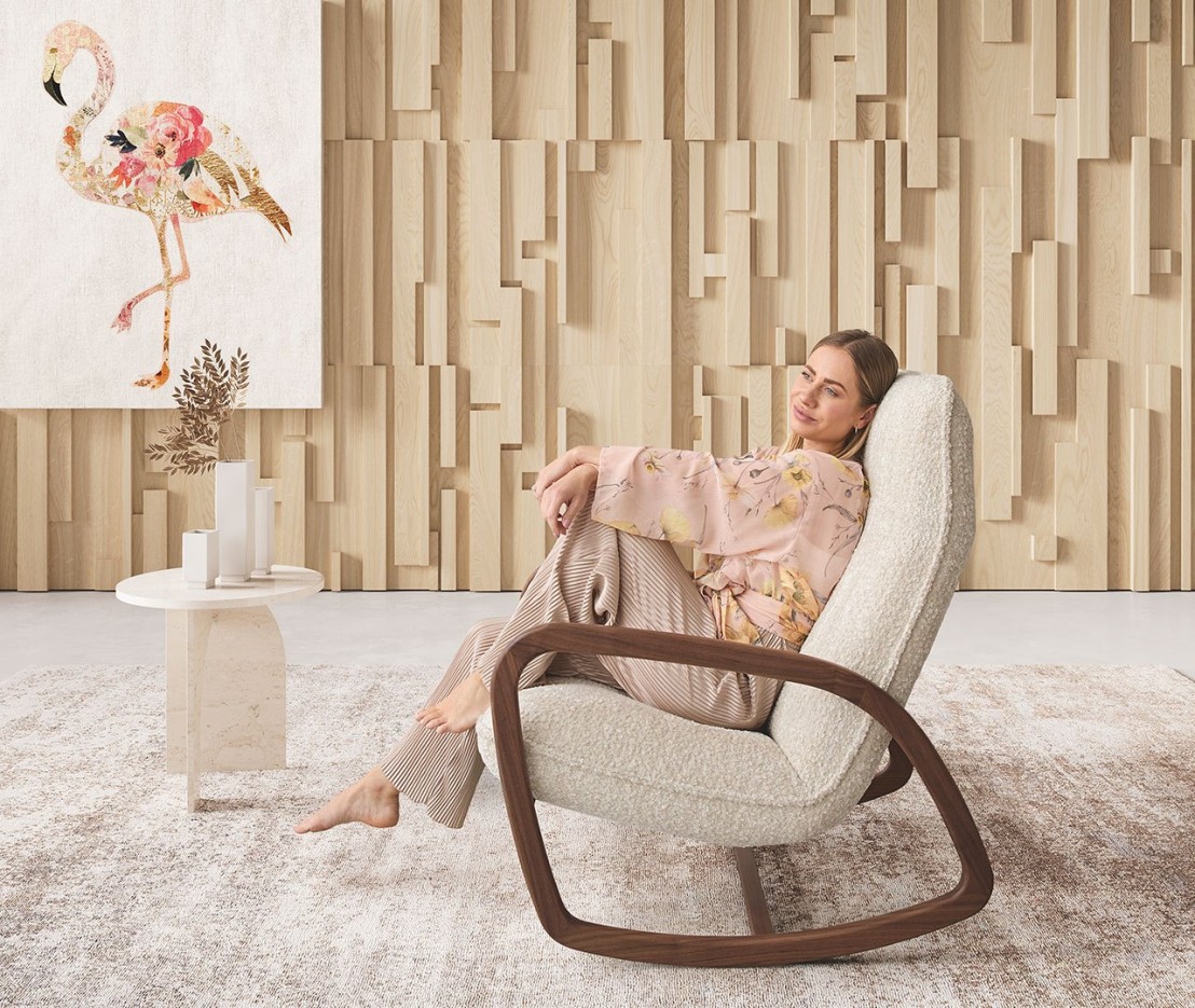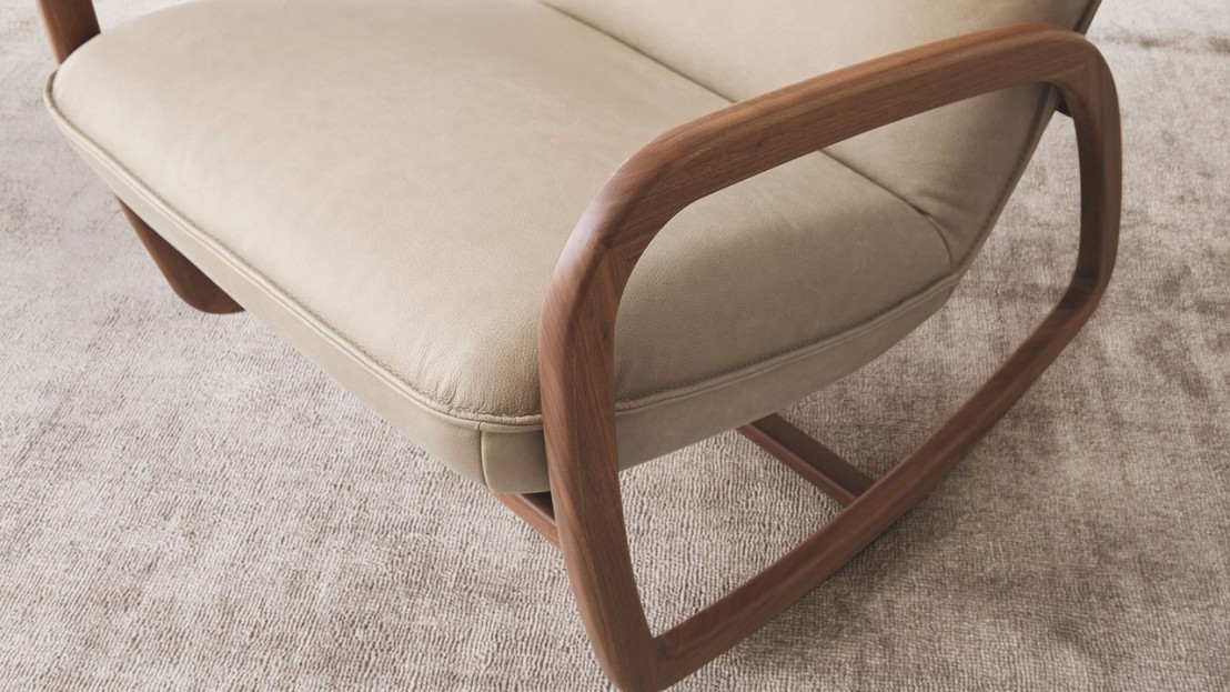 Structure en bois massif cintré aux élégantes lignes courbées & dossier haut pour un soutien complet du corps.