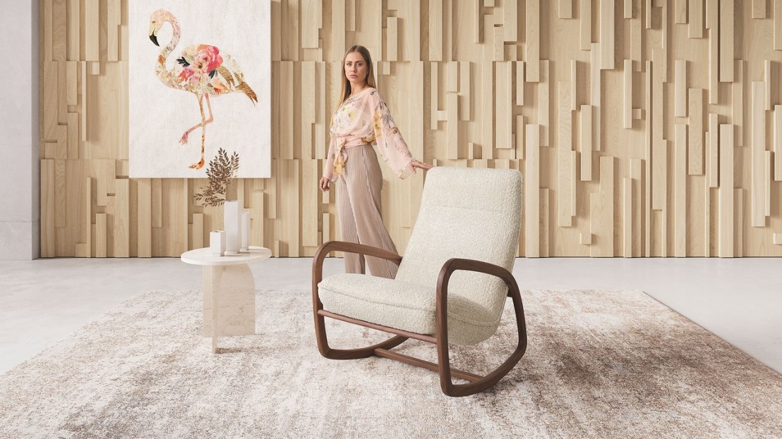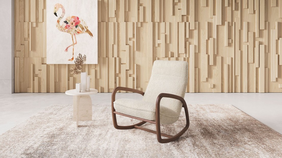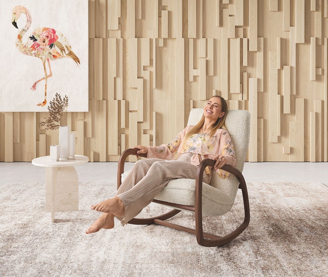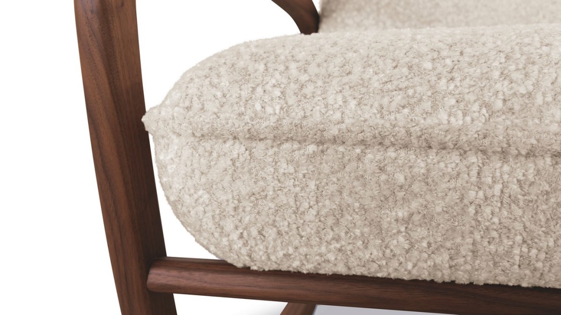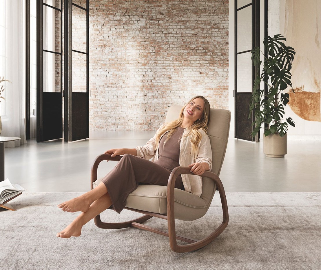 Structure en bois massif cintré aux élégantes lignes courbées & dossier haut pour un soutien complet du corps.