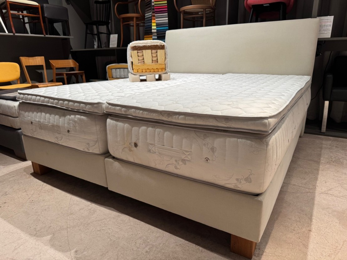 Vos matelas sont des MASTERPIECE VITALWOOD, unique au monde avec sa technologie en ressorts en bois (AWSTTM) et composants 100% naturel (27-28 cm d’épaisseur). C’est le chef d’œuvre de nos matelas 100% bio. La laine et le coton régulent la température et l’humidité à l’instar des copeaux de pin. Le latex naturel VERT MAYA grâce à ses colonnes d’air assure une ventilation parfaite de votre couchage. Tout cela dans le seul but d’assurer un support maximal de votre corps et de ses mouvements durant la nuit.